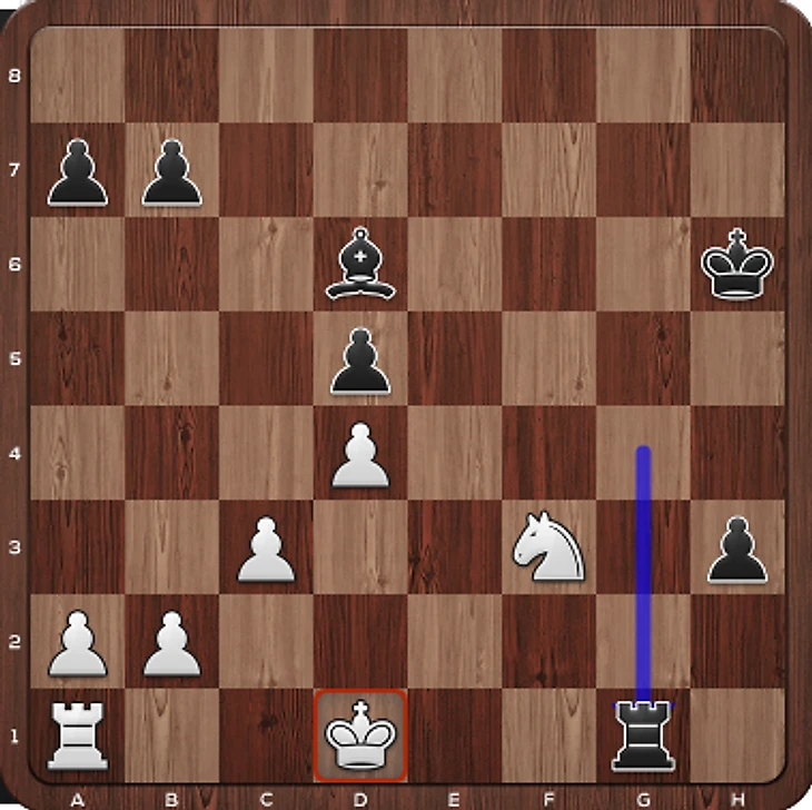 33.Nf3 Qg2 34.Ne1 Qg4+ 35.Qxg4 Rxg4 36.Nf3 Rg1+