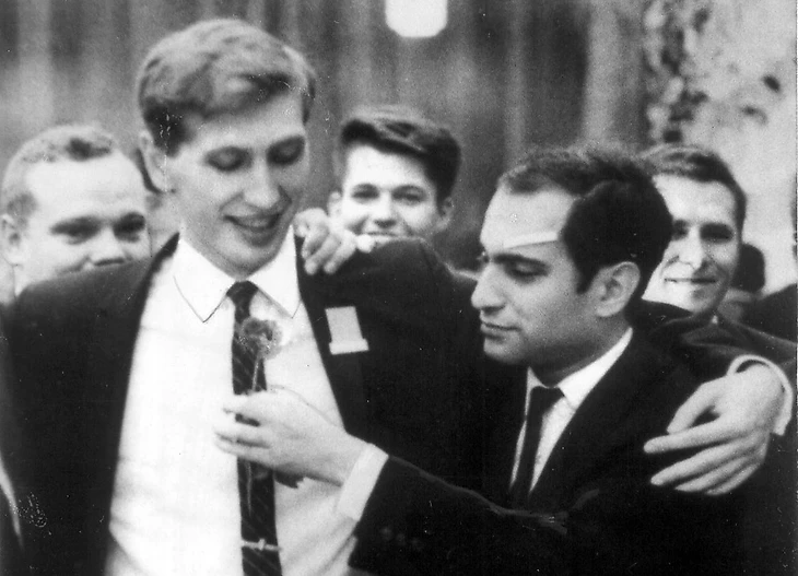 Так в 1962 году, лишившись права официально оспаривать у него титул чемпиона мира, он предложил ему три очка форы в матче вне рамок ФИДЕ, полагая, что он, Фишер, настолько превосходит засидевшегося на троне чемпиона, что это немного уравновесит их шансы. И сильно переживал по поводу ничьей в единственной их партии на олимпиаде того же года. Ботвинник спасся в, казалось, безнадежной позиции – да причем, не сам, а после анализа с участием всей сборной СССР. Тогдашний чемпион считал это положительным примером командной работы, а Фишер подтверждением того, что «все советские против него».