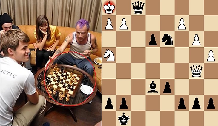 Пока действующий чемпион мира по шахматам Магнус Карлсен поднимает шахматный мир на уши, впервые снимаясь с соревнований Grand Chess Tour в Сент-Луисе и подозревая своего соперника Ханса Ниманна в жульничестве и читерстве, мы вернемся на 11 лет назад. В сентябре 2011-го года Магнус Карлсен встретился с музыкантами Red Hot Chili Peppers. Встречу инициировал бас-гитарист перцев Фли. Оказалось что Фли и другой участник группы Джош Клингхоффер большие любители шахмат и постоянно играют между собой во время гастролей Red Hot Chili Peppers.