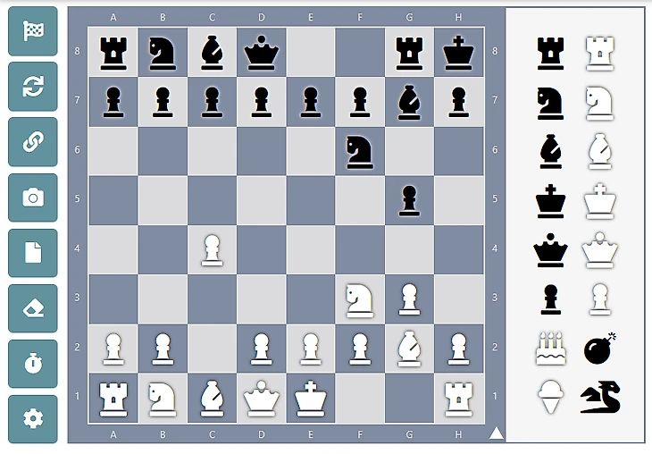 · Nc3: развивает коня c3 и может подготовить атаку на королевском фланге.