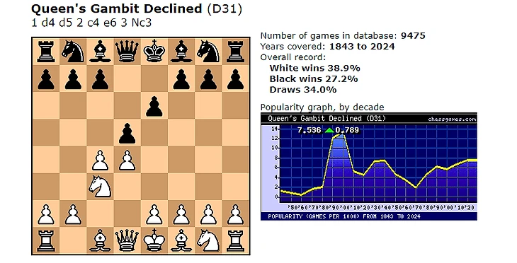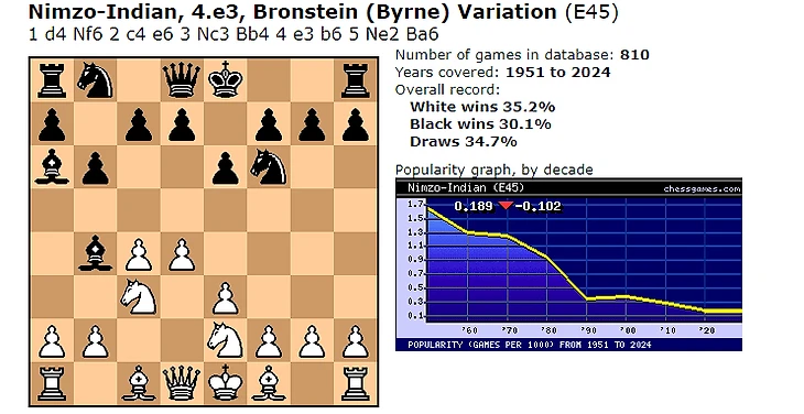 Михаил Ботвинник, партия против Бронштейна, 1951 года. Ботвинник, играя черными, применил вариант защиты Нимцовича в ферзевом гамбите. Плюсы этого приема: