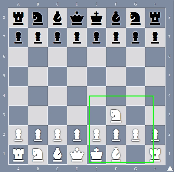 Конь f3 обычно развивается на c3, а затем на e2, где он оказывает влияние на центр и защищает пешку e4.