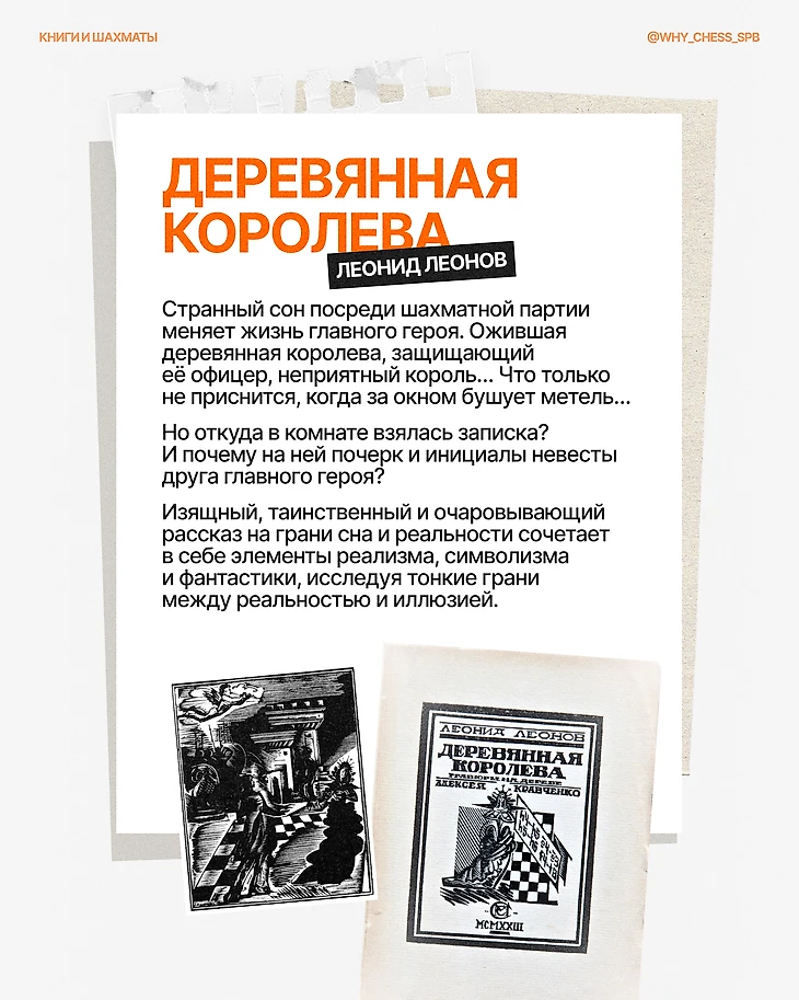 Если автор хочет раскрыть тему гениальности, одиночества и безумия гения, то шахматы с их четкими правилами и бесконечными абстрактными ходами являются идеальным решением такой задачи, тем более что и в реальной жизни многие великие шахматисты были близки к безумию. Главный герой «Деревянной королевы» Леонида Леонова не может справиться со сложностями реального мира и ищет спасения в мире шахматном, где действуют четкие правила, все понятно и предсказуемо. И достаточно сделать правильный ход, чтобы изменить игру в свою пользу. В поисках этого хода главный герой и сойдет с ума.