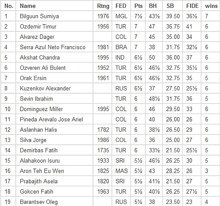 который после 0,5 в первых трёх турах выдал серию из шести побед и поделил 5-8 места. Я же набрал 5,5 очков и поделил 15-19 места (при 70-ти участниках), что, в целом, считаю неплохим результатом.