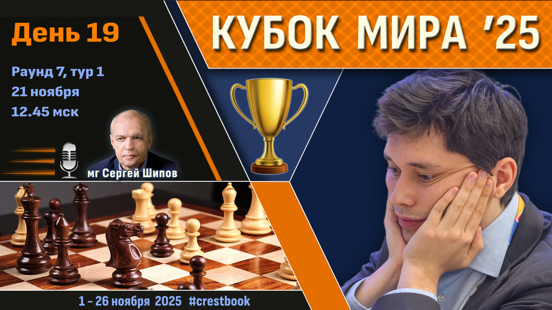 Увлекательные шахматы / Кубок Мира 2025 🏆 День 19 [1/2, тур 1] ⏰ 21 ноября, 12.45 🎤 Шипов, Филимонов ♛ Шахматы