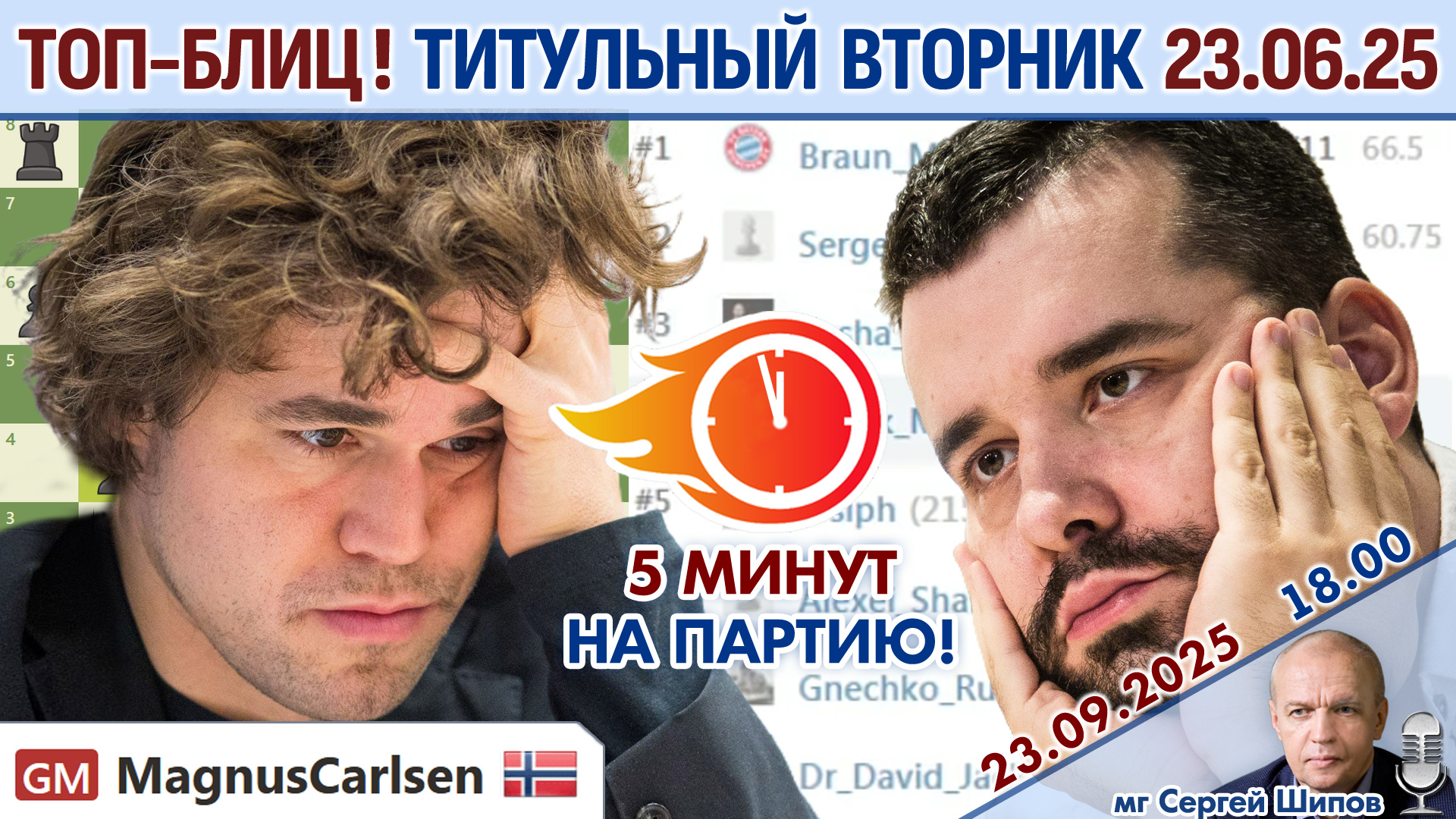 Увлекательные шахматы / Топ-блиц! 💥 Титульный вторник 23.09.2025 + турнир 🎤 Сергей Шипов ♕ Шахматы