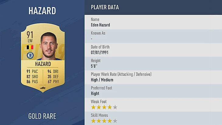 Пожалуй, лучший атакующий полузащитник мира по заслугам находится в пятёрке лучших игроков мира по версии FIFA 19. И за год на его карточке улучшились почти все показатели.