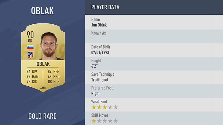Де Хеа — единственный вратарь в игре с рейтингом больше 90, и это вполне заслуженно, учитывая, что именно испанец вошёл в команду года-2018.