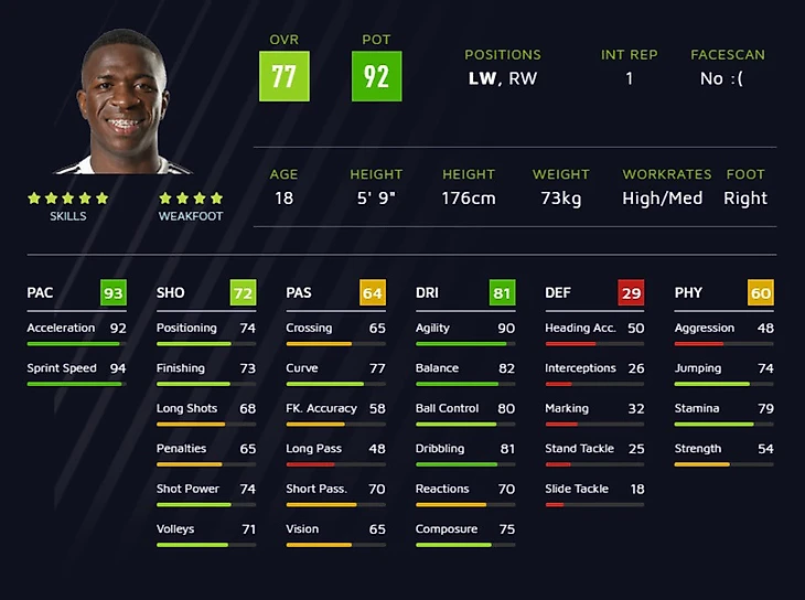 Рейтинг — 77 (92)Бразильский технарь, как многие писали, был куплен «Реалом» на смену Роналду, по крайней мере по позиции. Разумеется, каким бы талантливым Жуниор ни был, до португальца ему пока далеко. Но у него есть все данные, чтобы в скором времени стать лидером «Реала», в котором сейчас проходит смена поколений.