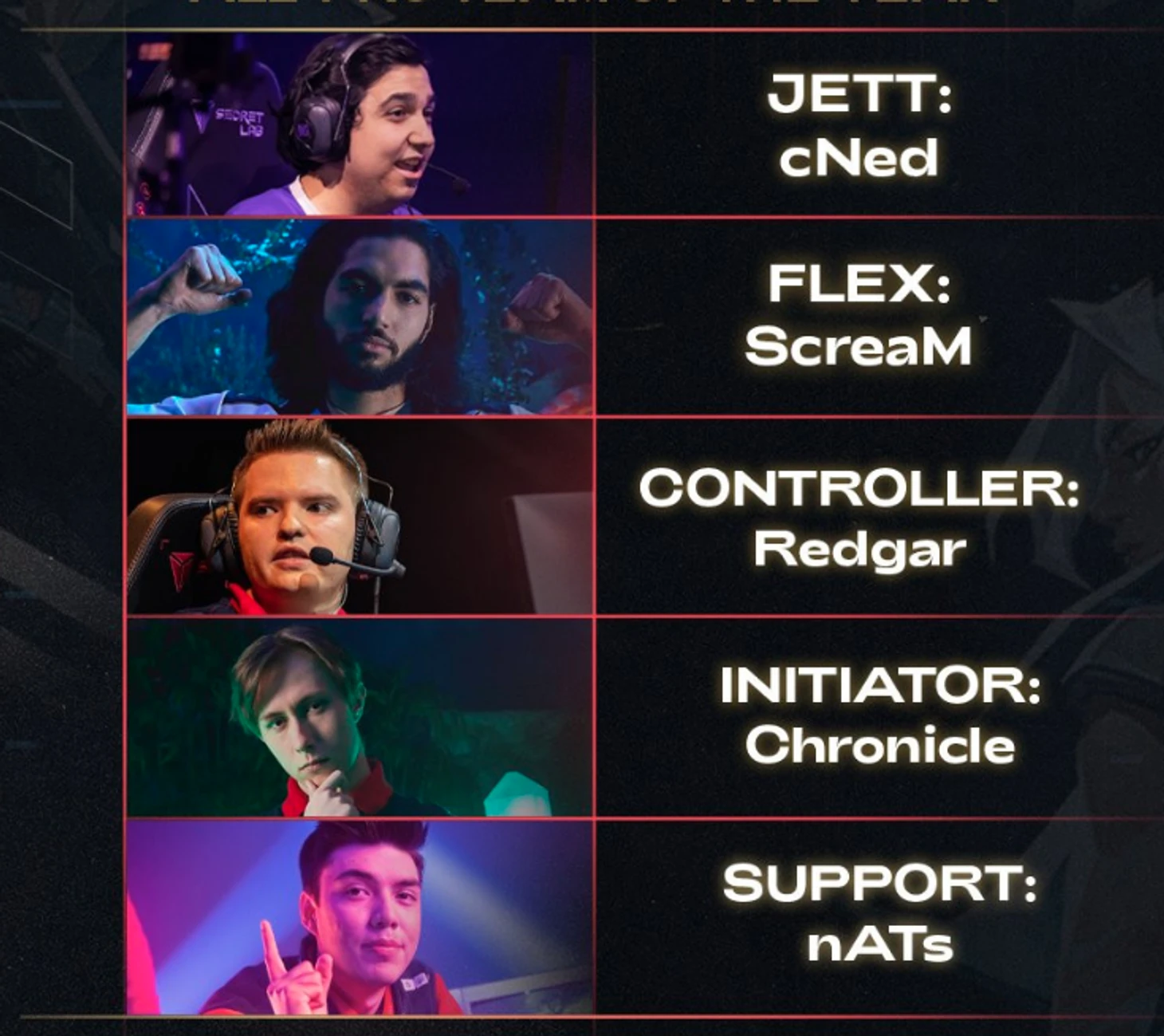 Отметим, что в команду попал только один игрок состава Acend, который выиграл VALORANT Champions 2021, Мехмет cNed Ягиз Ипек. Замкнул пятёрку лучших представитель Team Liquid Адиль ScreaM Бенрлитом, который перешёл в Valorant из CS:GO в 2021 году.