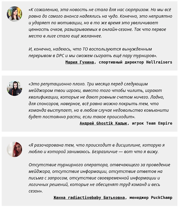 Отметим, что такое решение компании сообщество Dota 2 восприняло крайне негативно. Многие комментаторы и представители команд возмущены отменой. Однако для других это не стало сюрпризом. Некоторые задаются вопросом: будет ли какая-то компенсация для команд, прошедших на первый мейджор по результатам региональных лиг.