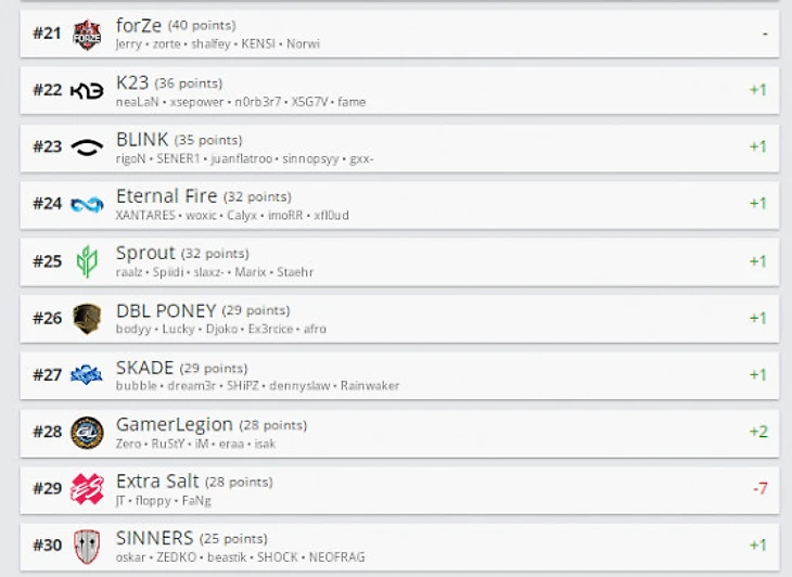 Остальные команды с 22 по 28 места просто улучшили своё положение на строчку. Изменения в топ-30 Hltv отражены на скриншотах ниже.