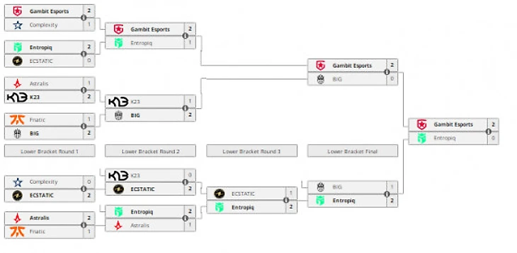 В СНГ-финале чемпионам противостояла российская Entropiq. Команды играли на картах Mirage (16:7) и Dust 2 (16:12). Это была вторая встреча составов в рамках турнира. Ранее в полуфинале верхней сетки Gambit также одолела Entropiq и отправила коллектив в сетку лузеров.