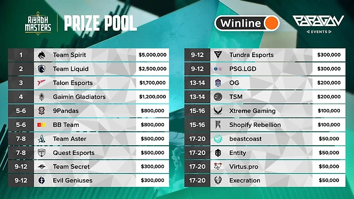 Русские команды 9Pandas и BetBoom заняли 5-6 места и заработали по 800.000 долларов призовых. Virtus.Pro заняли 17-20 места и получили 50.000 долларов.
