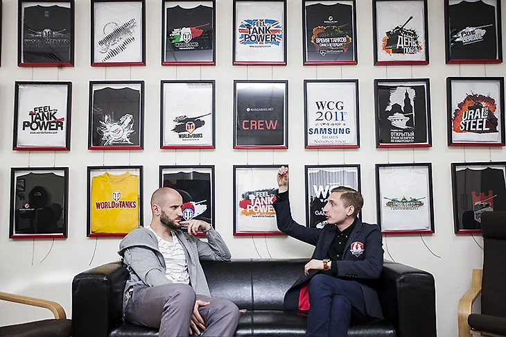 Первым местом, в которое пригласили нашу немногочисленную и немеждународную делегацию, оказался огромный, чуть ли не с пол-Беларуси, Open Space, в котором занимались своими делами ребята из отдела киберспорта. Его руководитель Алексей Корнышев оказался очень увлеченным человеком. Но не так, как универовский преподаватель, который думает, что его непрофильный предмет – самый важный в студенческой жизни, а по-нормальному. В течение почти часа Леша по-простому раскладывал профессиональный киберспорт и объяснял, как можно иметь на рубке в «Танки» ежемесячные две тысячи долларов.