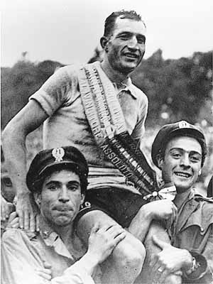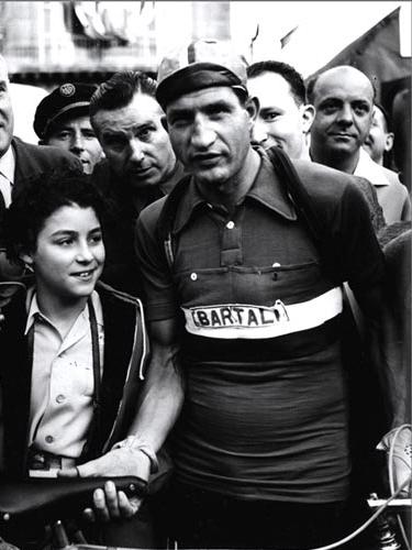 Джино Бартали, без сомнения, является одним из самых ярких спортсменов золотого века велоспорта. Простой тосканский парень, он превратился не только в спортивный, но и в культурный символ страны. В годы второй мировой войны он стал героем, но о его подвиге стало известно лишь в 2000 году, уже после его смерти. В 1948 году он спас Италию от политического переворота, выиграв Тур де Франс, тогда вся страна отвлеклась от забастовок и беспорядков, грозивших настоящей революцией, наблюдая за победными выступлениями Бартали. Джино Бартали был дважды награждён Орденом за заслуги перед Итальянской республикой.