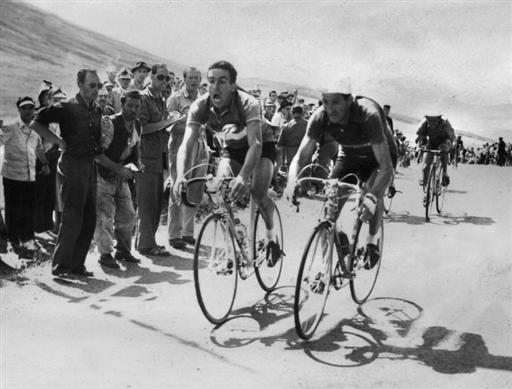 Но один из самых знаменитых моментов их дружбы-соперничества был запечатлён на Тур де Франс 1952 года. Во время этапа через Лозанну и Alpe d’ Huez Коппи захватил жёлтую майку лидера. На тяжелейшем подъёме на Галибье фотограф Карло Мартини поймал момент, когда два вечных врага обменялись бутылкой с водой.