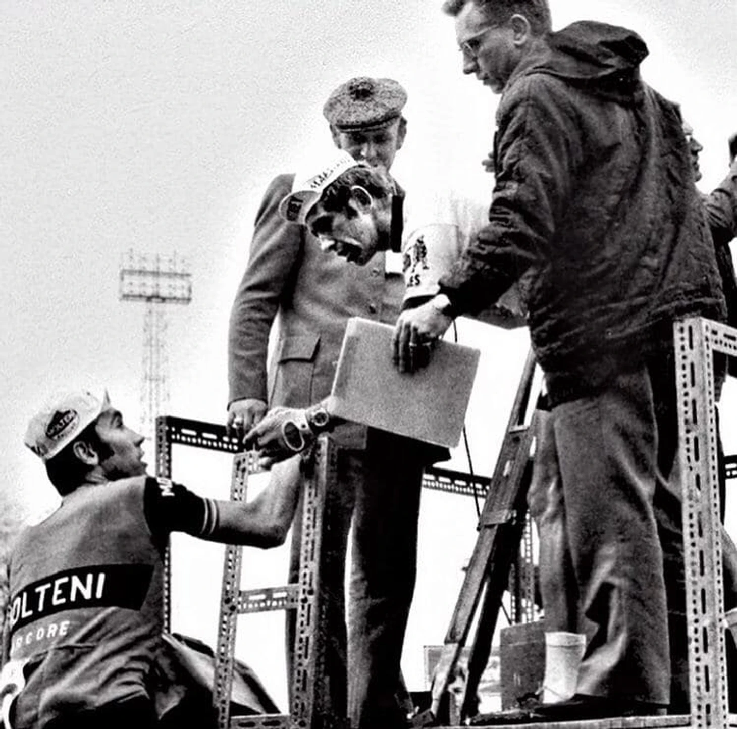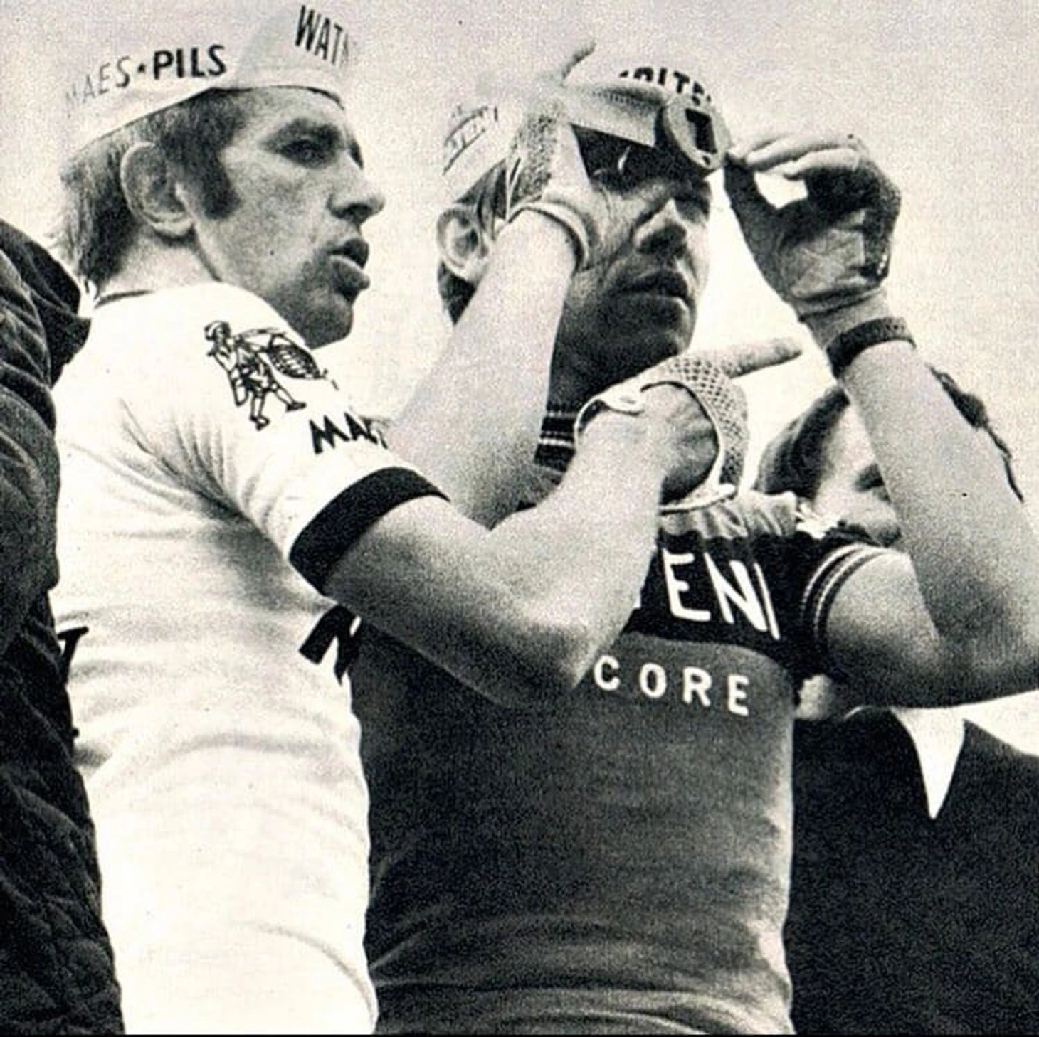Парень слева от Эдди Меркса – соотечественник и один из заклятых соперников в классиках – Франс Вербек (Frans Verbeeck). В историю велоспорта он вошел не только как победитель Amstel Gold Race, Флеш Валонь и чемпионата Бельгии, а своим прозвищем – «Летучий молочник».