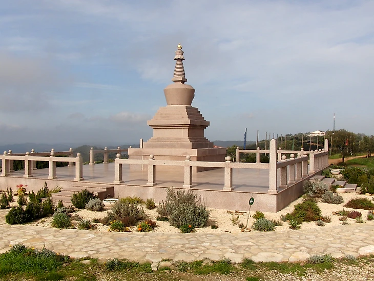 Другим известным подъемом гонки является Альту-ду-Мальян (2,5 километра со средним градиентом в 9,8%). Он противоположен Фойе – это короткое, но очень крутое восхождение со стенками, в моменте достигающими безумных 24%. На его вершине расположена буддийская Ступа Просветления, являющаяся символом потенциала, который есть у каждого человека и позволяет раскрыть все способности ума и освободиться от страстей. Ее построили пятнадцать лет назад, и она стала первым буддийским памятником на территории Португалии. Мастера, выбравшие это место, посчитали, что самая высокая точка горы является идеальным местом для концентрации положительных энергий.
