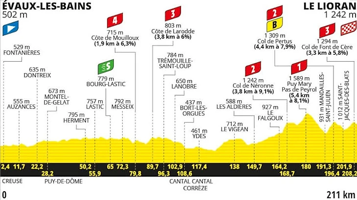 Впрочем, существует и другая точка зрения. Гонщики к этому времени изрядно соскучатся по горным сражениям, и при первой же возможности попробуют «проверить паспорта». Тем более, что в гонке есть не любящий «колхозы» Тадей Погачар и сильно страждущий желтую майку дерзкий дебютант Тура Ремко Эвенпул, которым такие восхождения вполне подходят. Да и не стоит забывать, что несмотря на кажущуюся относительную легкость гор Центрального массива, общий набор высоты на этапе составит свыше 4300 метров по вертикали, и это совсем не шутки.