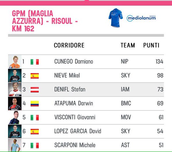 Как-то незаметно #Микель Ниеве вышел на второе место Горного зачета #Джиро д'Италия. Перед решающим этапом от #Дамиано Кунего его отделяют 36 очков, так что у Микеля есть шанс завоевать для #Sky лучшего горного гонщика. Удачи Микелю!)