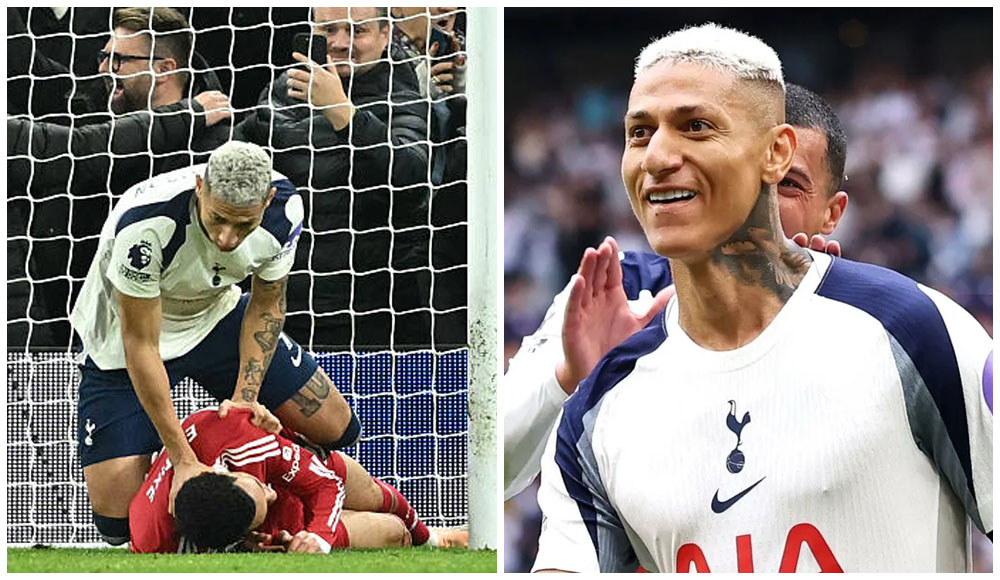 In English, please / Ришарлисон забил гол «Ливерпулю» и оседлал лежащего Экитике. Желтую дали Собослаи за разговор с судьей про эпизод 🙈