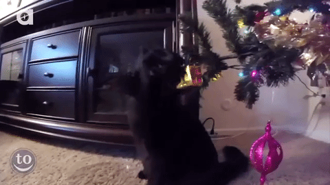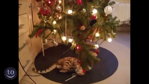 Лучшее украшение новогодней елки - это не шарик, не золоченая шишка и даже не гирлянда с кучей цветных огоньков. Самое незаменимая вещь для украшения новогодних деревьев - кот домашний, одна штука.