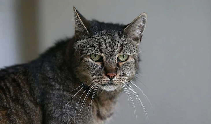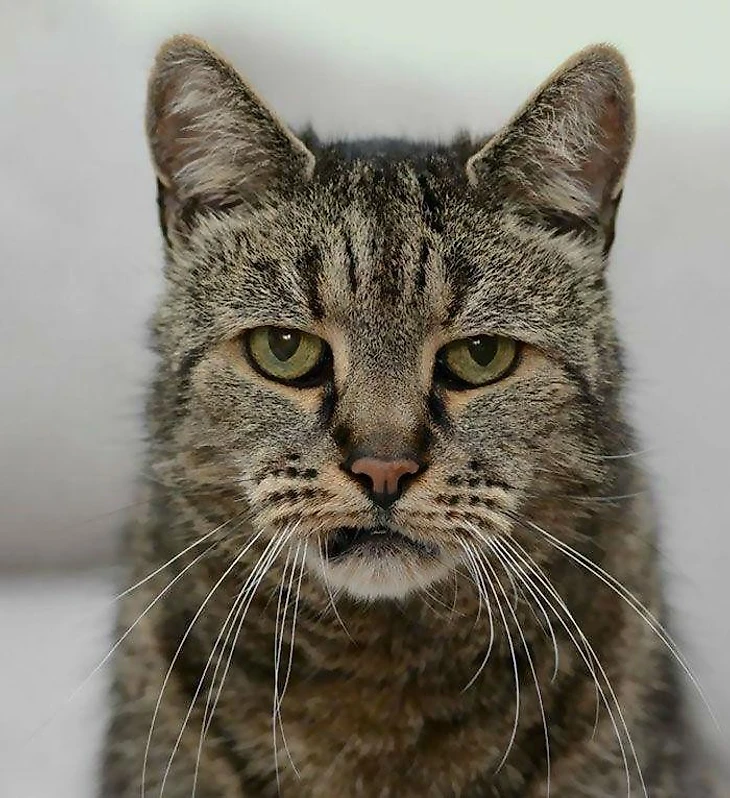 С виду кажется, что у котика угрюмый вид. Но на деле он очень милый и ласковый.
