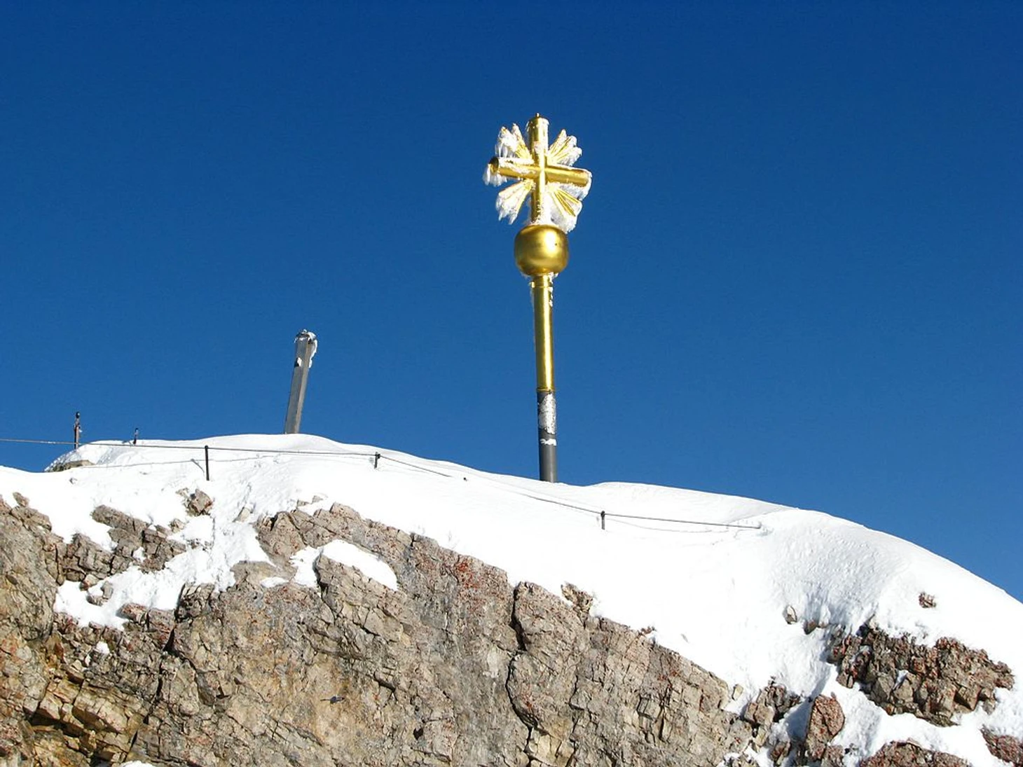 Высота этой горы есть величина… непостоянная. Сначала пострадал средний пик: при строительстве в 30-х годах ХХ века станции канатной дороги его вершину разрушили. Потом, в 1938-м, та же участь постигла вершину западного пика. Вермахт вознамерился построить там станцию контроля полетов военных самолетов. Взорвать-то макушку горы взорвали, а станцию так и не построили. С тех пор пик имеет фиксированную высоту в 2 962 км.Местный священник предложил в 1851 году установить на вершине большой позолоченный крест. Поднимали его на макушку горы 28 человек. Потом ветры и непредсказуемая горная погода повредили его, и спустя 30 лет крест пришлось заменить. Еще одна замена креста произошла в 1993 году. Только обошлось уже без ручной работы: конструкцию высотой 5 метров подняли вертолетом.