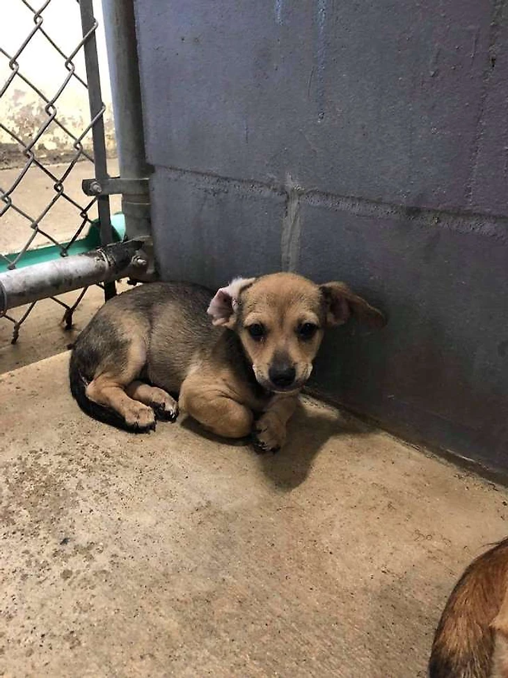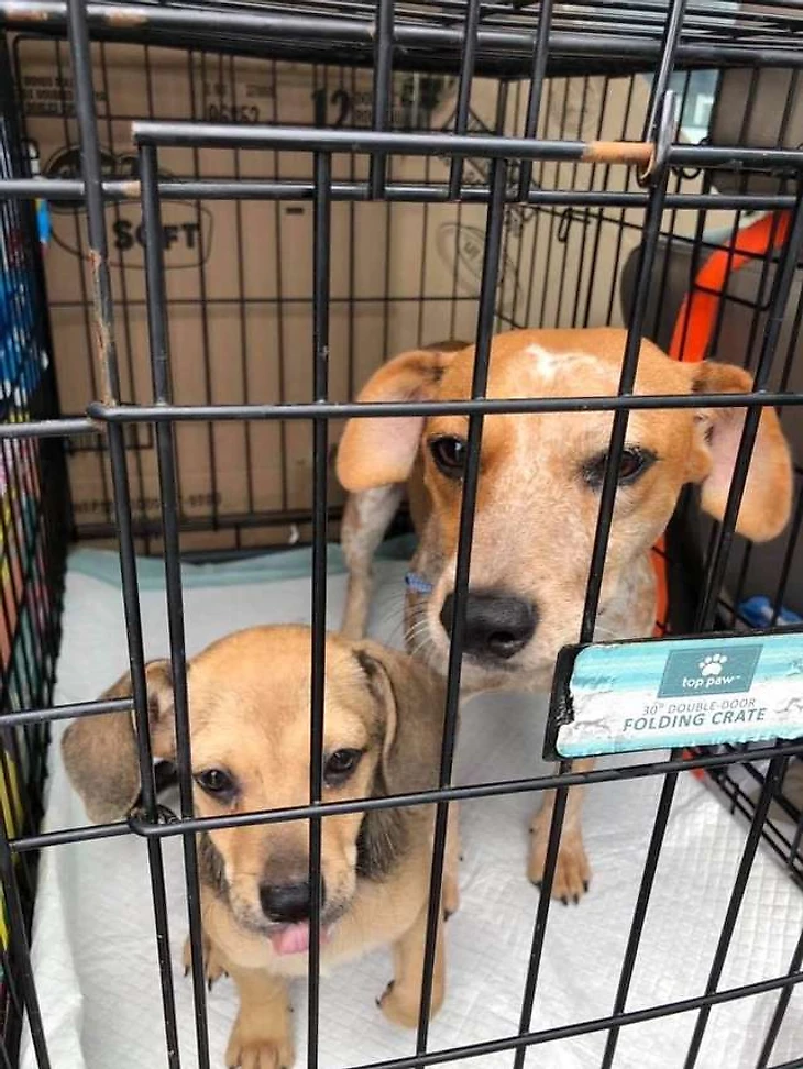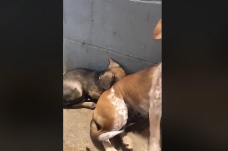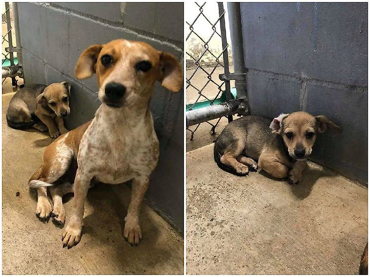 В переполненном приюте для животных в округе Техаса, США, мать-собака Сэйди отчаянно пыталась защитить свою малышку Бензи, пряча ее за собой. Обе собаки дрожали от страха - они еще не успели привыкнуть к громким звукам и множеству собак вокруг, и находились в сильном стрессе.