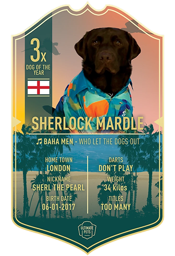 Позже каждый новый проект получал свой дизайн. Например, ван Барневелд был в оранжевом оформлении, ван Гервен – в зелёном, а Уэйн Мардл стоял в окружении пальм. Кстати, он же заказал отдельную карточку для своей собаки – теперь любой желающий может купить алтимат-табличку Шерлока, который трижды признавался «псом года», и у которого очень много титулов. Как видим, без юмора не обходится.