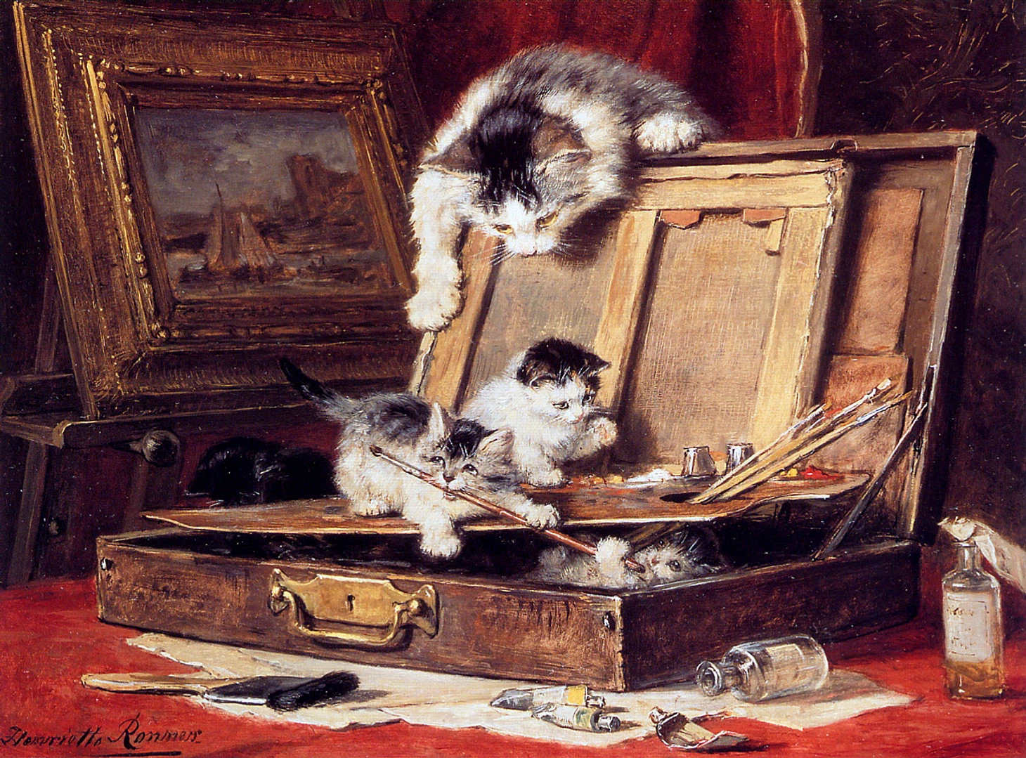 Генриетта Роннер-Книп (Henriette Ronner-Knip) (1821-1909) - голландская художница. Родилась в Амстердаме, в семье художника-пейзажиста. Генриетта Роннер-Книп завоевала широкую известность благодаря своим изображениям собак. Её заказчиками стали короли Пруссии, Португалии, Бельгии – всем хотелось иметь портреты своих четвероногих любимцев. Около 1870 г. Генриетта Роннер-Книп переключилась на кошек. В это самое время у неё в доме как раз появилась кошка.