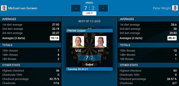 Michael van Gerwen 7-2 Peter Wright