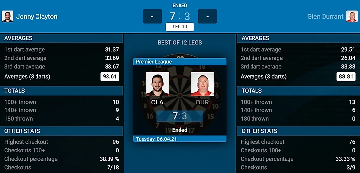 Jonny Clayton 7-3 Glen Durrant