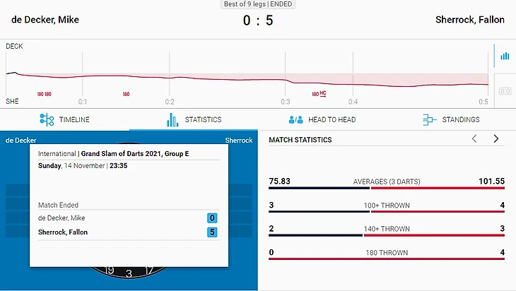 Группа, в которой произошло сразу два исторических события. Первое - Фэлон Шеррок смогла обыграть своего оппонента Майка де Деккера в сухую со счётом 5-0, при этом показав лучший средний набор для женщин на дартс турнирах за всю историю 101,55!!! Второе - Фэлон Шеррок стала первой женщиной, которая смогла попасть в плей-офф турнира Большого Шлема, обыграв "Немецкого гиганта" Габриэла Клеменса!!!!! Фэлон вышла со второго места вместе с Питером Райтом.