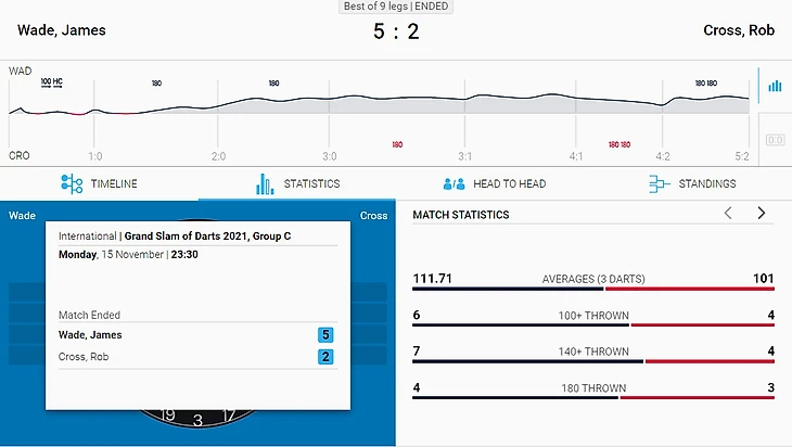 Очень упорная группа, где сразу 3 игрока боролись за выход в плей-офф турнира. В самый последний момент в плей-офф ворвался Джеймс Уэйд, который продемонстрировал просто фантастическую игру против Роба Кросса, который, правда, тоже прошёл дальше