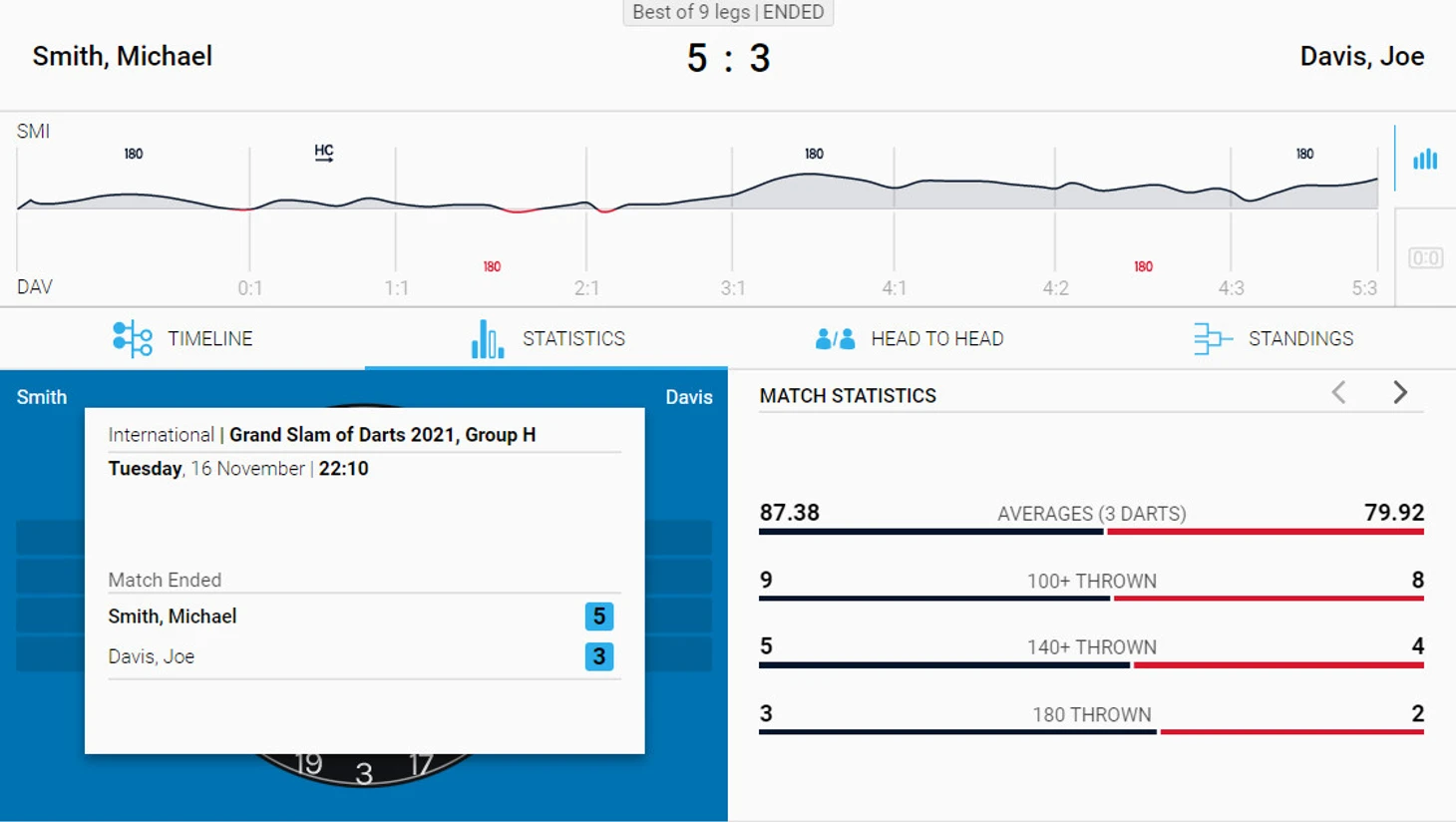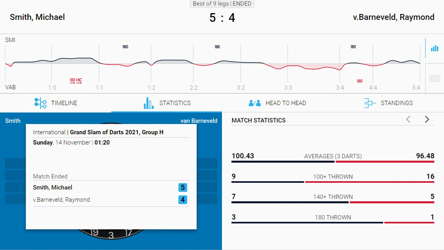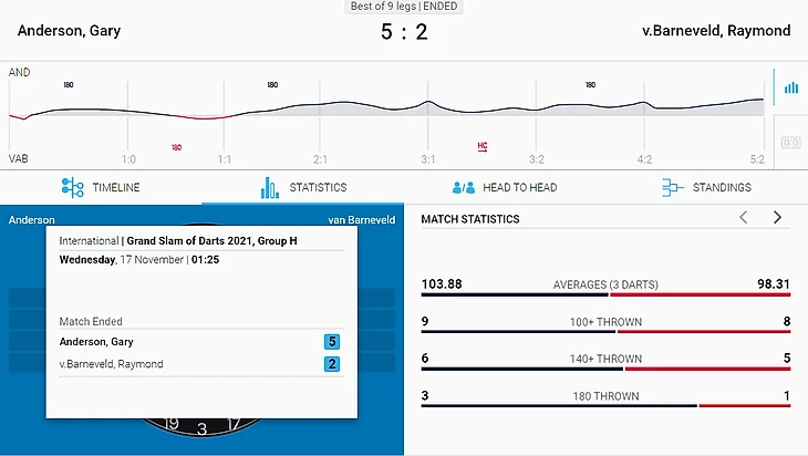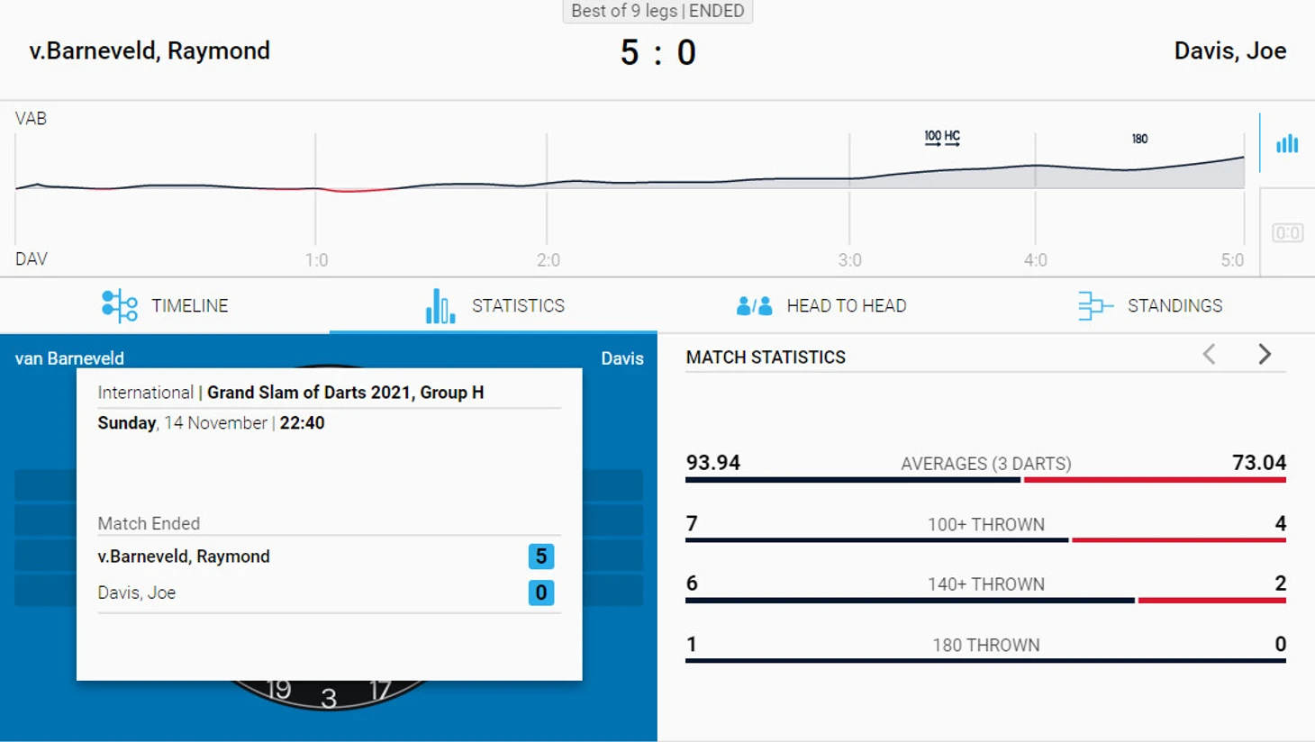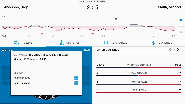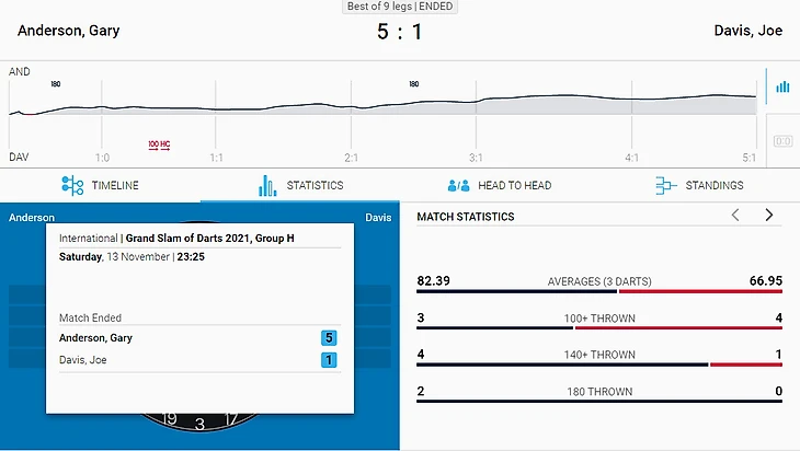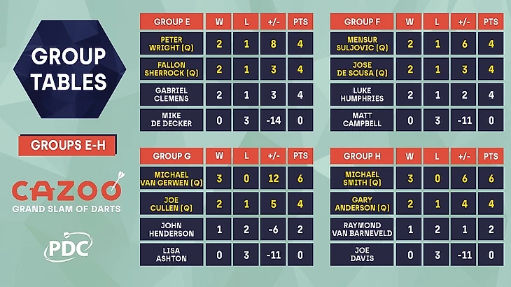 Группа, в которой в заключительном туре многие ждали топовый матч между Гарри Андерсоном и Раймондом ван Барнавельдом и не прогадали. Игра оказалась решающей с очень хорошими наборами. Андерсон показал топ дартс и заслуженно прошёл в плэй-офф. Также обязательно нужно отметить Майкла Смита, который не просто выиграл такую непростую группу, но также не проигрывает уже 13 матчей подряд на групповой стадии на турнирах Большого Шлема. Джо Дэвис показал худшую игру на турнире