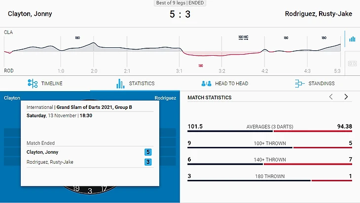 Jonny Clayton 5-3 Rusty-Jake Rodriguez