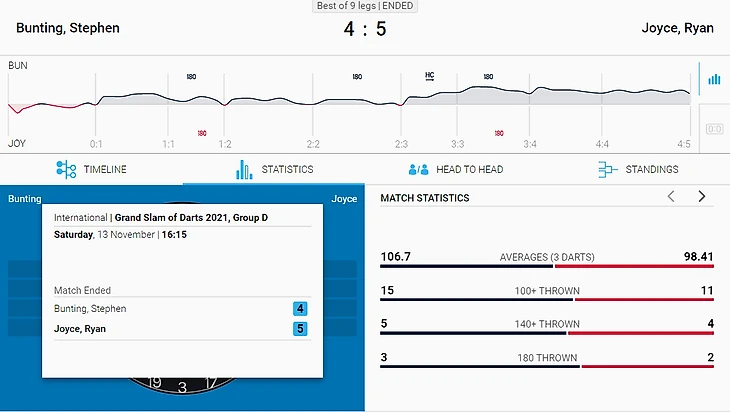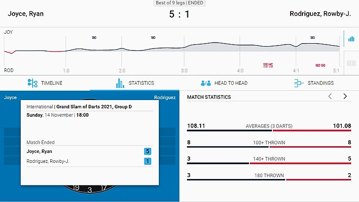 Очень интересная группа, в которой без Дмитрия ван ден Берга собрались достойные друг друга участники. Необходимо отметить, что трое дартсменов из группы отметились местами очень хорошими для себя наборами за сто очков - это Джойс, Роуби Джон Родригез и Стефен Бантинг. Двое последних в последнем туре играли за путёвку в плэй-офф, сильнее оказался молодой австриец Родригез, хотя Стефен сыграл неплохо. Заменивший Берга, Крис Доби не оправдал большинство надежд