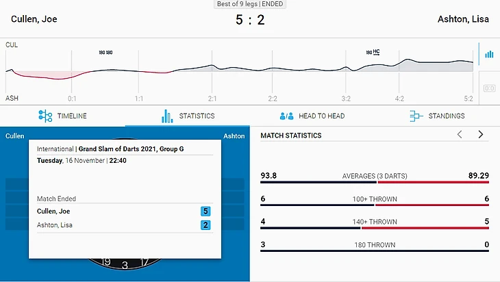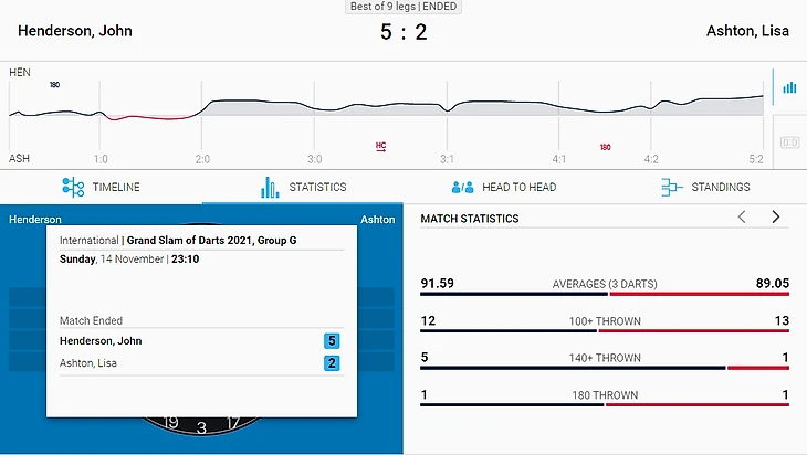 Группа, в которой также произошло историческое событие. Майкл ван Гервен во втором туре против Джо Каллена показал средний набор в 115,19 пуктов, что является абсолютным рекордом для турниров Большого Шлема по дартс. Джо, кстати, не стоит унывать он прошёл дальше вместе с МВГ. Лиша Эштон в отличии от Шеррок не смогла навязать своим оппонентам достойное сопротивление