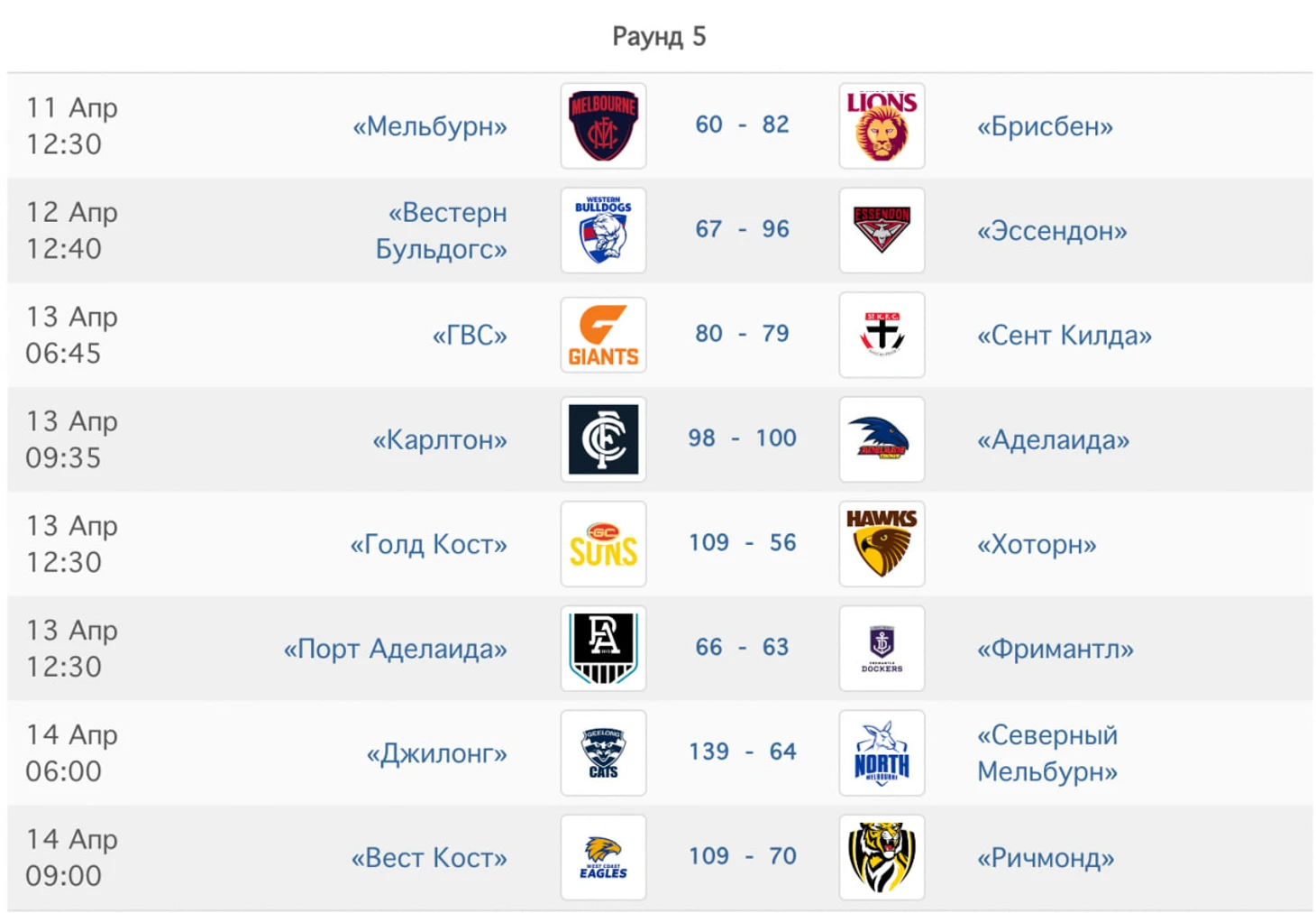Заметки после пятого раунда АФЛ-2024
