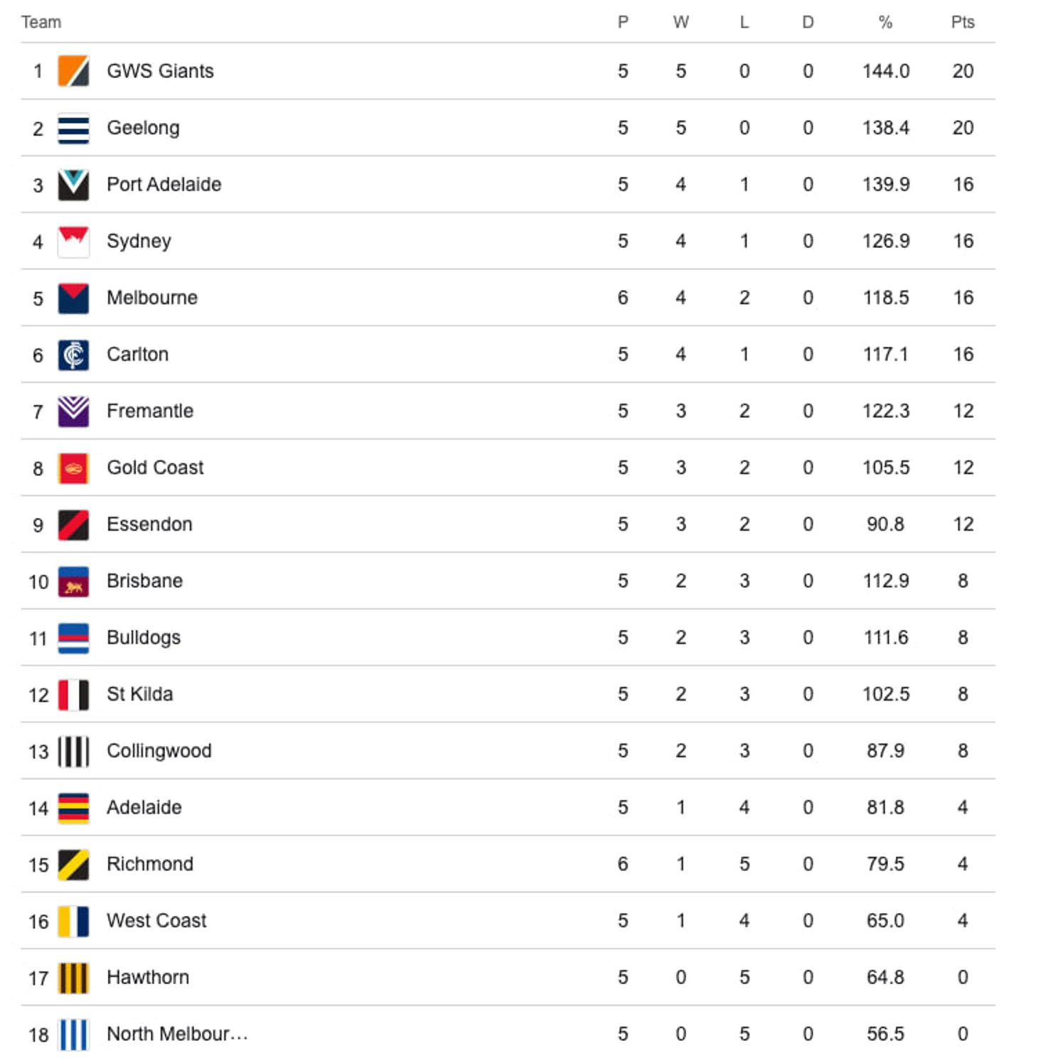 Во второй четверти субботнего поражения от «Порт Аделаиды» «Фримантл» выиграл все клиренсы в центре (4–0), доминировал в чужих 50-ти (21–10), удвоил общее количество клиренсов (12–6) и был лучше в борьбе за мяч (40–32). Однако результат на табло не отражал этого доминирования: Джош Трейси забил всего три гола команды за этот период. «Докерам» нужно найти способ получить больше отдачи от затраченных средств, когда их полузащита и задняя линия контролируют игру. Ожидаемое возвращение Люка Джексона в атаку станет хорошим началом, его присутствие поможет Трейси и Джею Эмису. Голы и усиление давления со стороны легких форвардов также имеют большое значение.