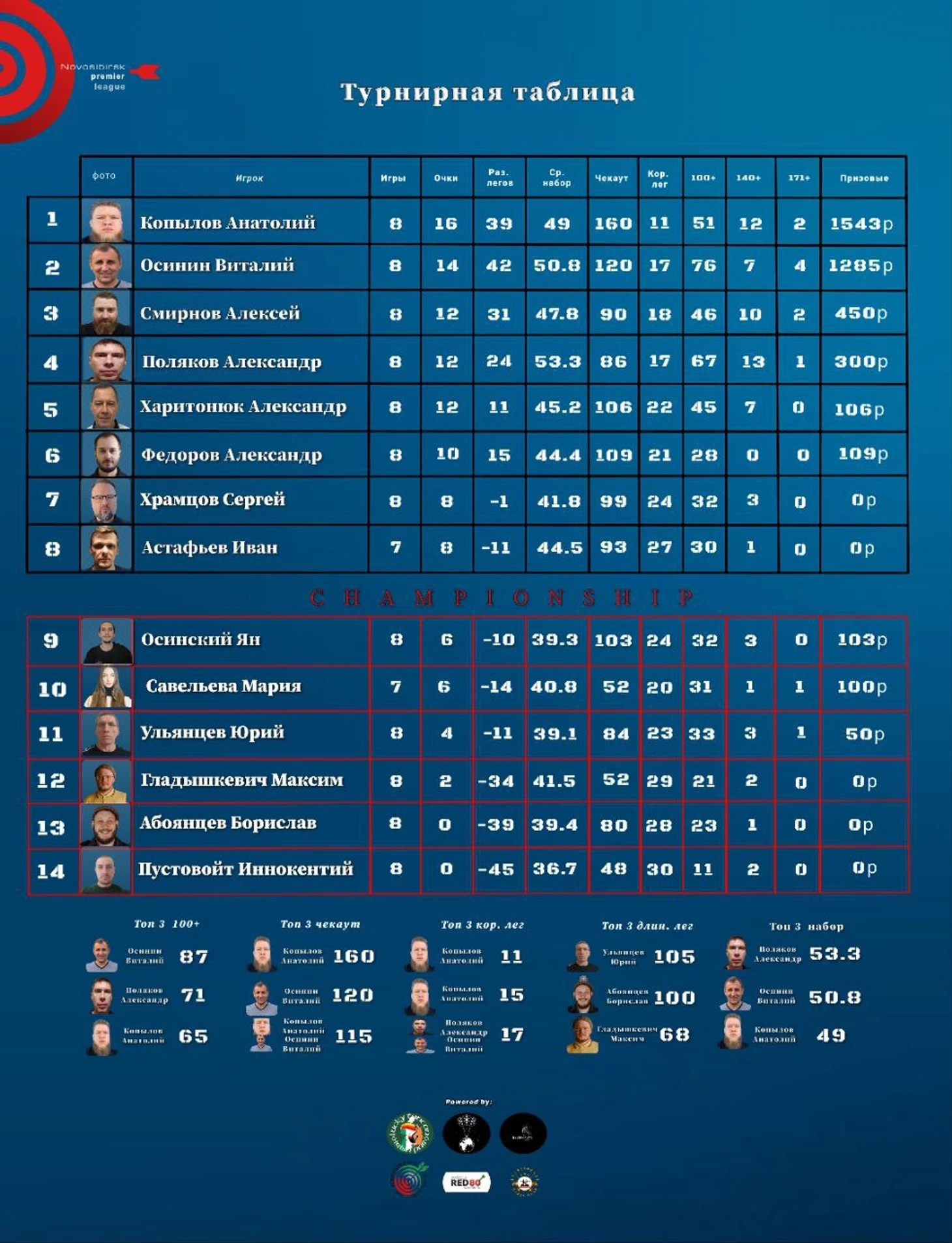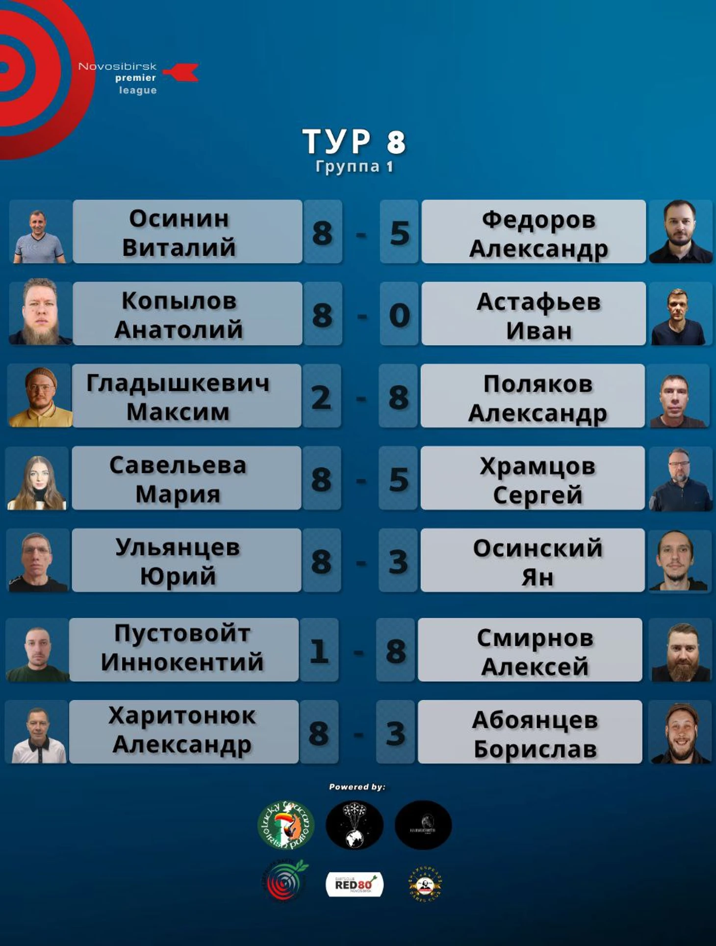 Результаты восьмого тура Novosibirsk Darts Premier League