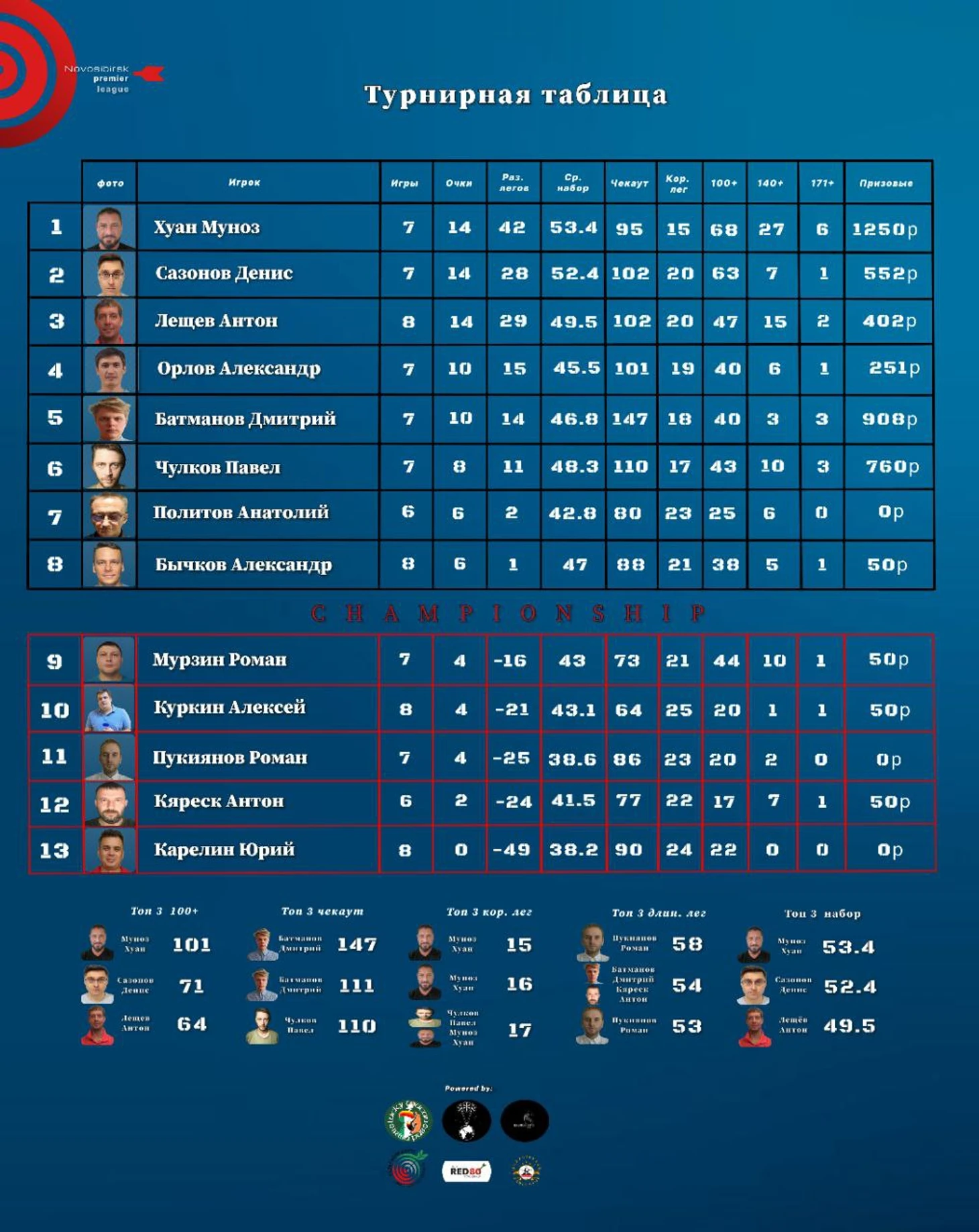 МАТЧ ТУРА Павел Чулков против Дмитрия Батманова Должен получиться хороший матч - соперники закрывают 100+ «чекауты» и любят устроить себе проблемы ведя в счёте. Дмитрий проиграл две последние игры, Павел одну выиграл и одну проиграл. Надеемся на наборы выше 50 и хорошие даблы.