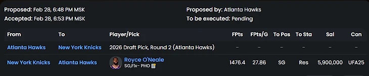 А вот этим шагом Атланта показывает, что все еще в борьбе. Хороший игрок за совсем небольшую компенсацию.