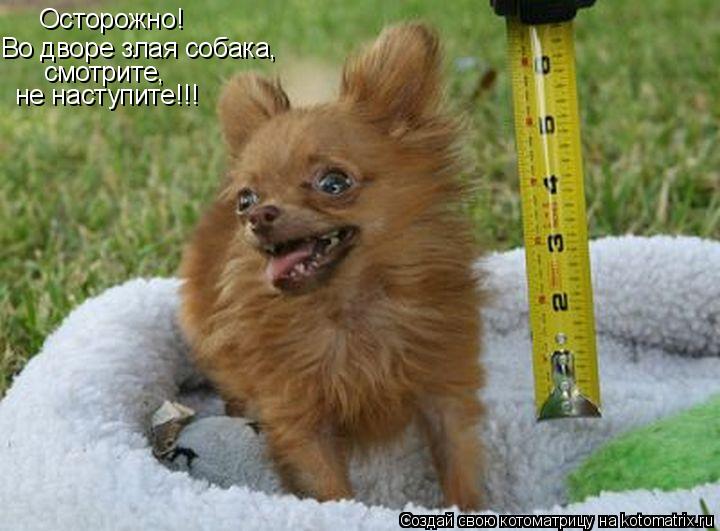 Сначала общепринятое - "Осторожно! Во дворе злая собака!"