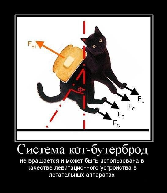 8. Кошек нет, бyтербродов тоже нет, а есть одно только масло, из которого состоят и кошки, и бyтерброды. Все, задача решена: масло всегда падает маслом вниз и приземляется на все четыре маслянистые лапы.