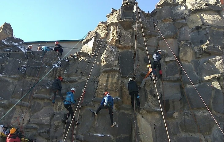 Объект возведен в далеком 1979 году. Впервые в мире строителям удалось создать такую высокую искусственную базальтовую скалу. Она располагается на внешней стороне здания. Несмотря на то, что объект является уличным, погодные условия Ростова-на-Дону позволяют эксплуатировать искусственную скалу практически круглогодично. В теплое время здесь тренируются скалолазы, туристы и промышленные альпинисты. Последний 18-ти метровый красавец располагается в горнолыжном комплексе «Хабарское» Нижегородской области. От того и сам он «одет» в граффити, посвященное этому виду спорта. Этот тренажер обладает самой скромной площадью среди сверстников – 150 «квадратов».