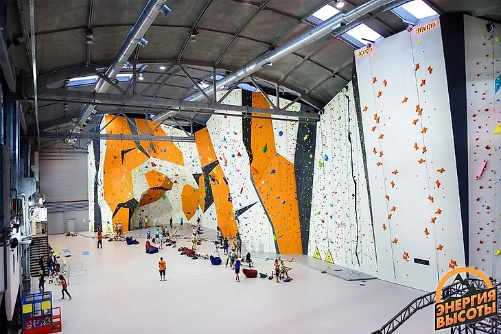 3. Скалодром «Энергия высоты» г. Санкт-Петербург. Площадь: 1270 кв. м. Высота: 17 метров. Все скалодромы-гиганты – детища современной эпохи скалолазания. Третью позицию занимает самый свежий из них – «Энергия высоты» из Санкт-Петербурга (ул. Софийская, 14). Ее открытие состоялось в июне 2018 года. Основную площадь – порядка 800 квадратных метров – занимает сектор «трудность». В углу скалодрома есть сильное нависание в форме грота с последующим вылазом на вертикаль.