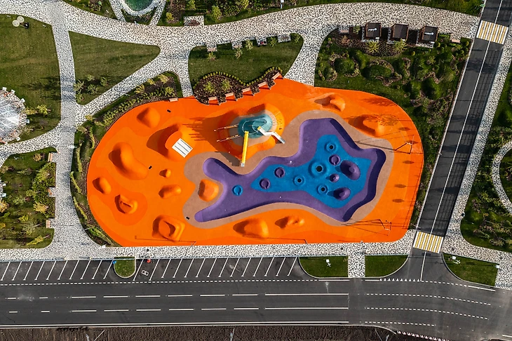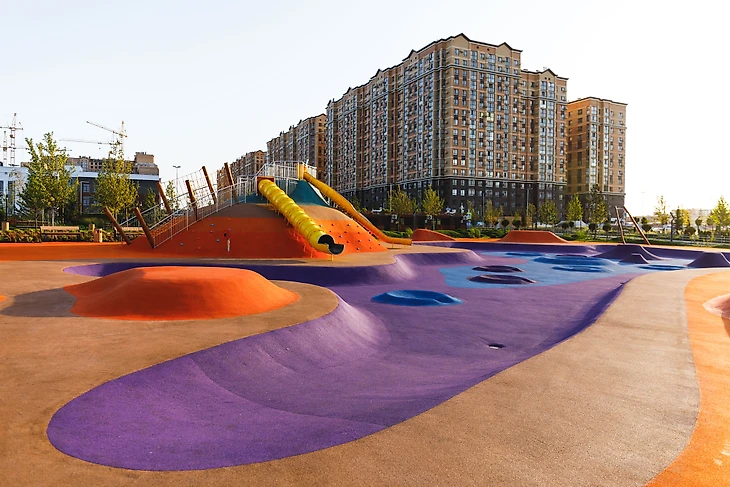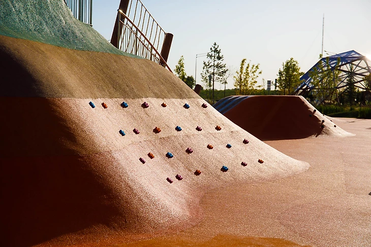 Создание детских пространств возле скейтпарков также позволяет перераспределить возрастные потоки. Когда рядом со скейтпарком есть такое пространство, дети могут играть на нём, и также безопасно кататься на детских велосипедах, самокатах и беговелах, не пересекаясь в движении с подростками и взрослыми. Скалодром с батутами и тарзанкой как стимуляторы всех отделов вестибулярной системы также развивают фантазию и интерес ребенка к играм и здоровому образу жизни, и подойдут как самым маленьким, так и детям постарше.